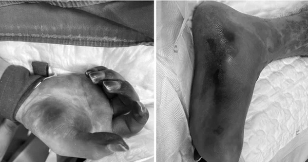 Phần đầu ngón tay và bàn chân của bệnh nhân đều bị hoại tử. Ảnh: Bệnh viện cung cấp