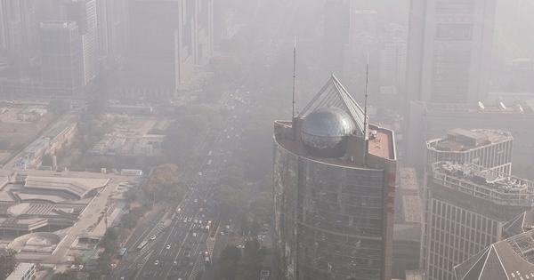 Đường phố ở trung tâm Bắc Kinh bị bao phủ trong sương mù hôm 1-11 Ảnh: REUTERS