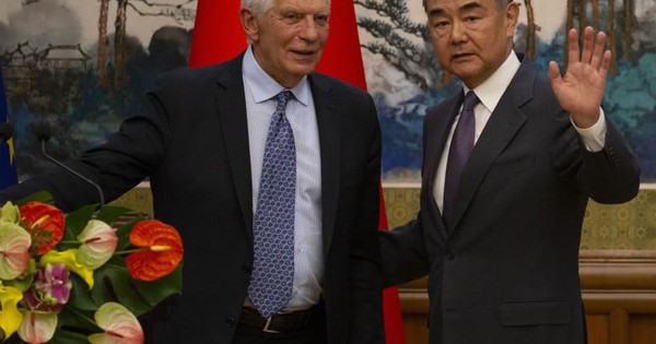 Ông Vương Nghị (phải) và người đứng đầu chính sách đối ngoại Liên minh châu Âu (EU) Josep Borrell hôm 13-10. Ảnh: AP